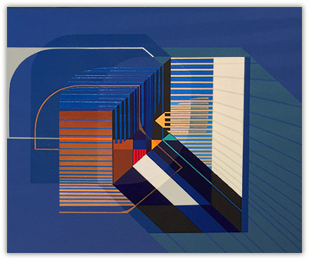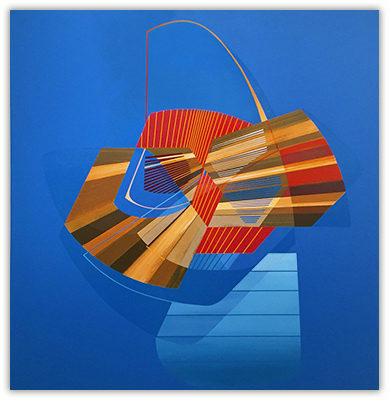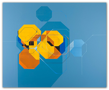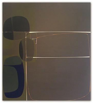 The paintings diagram the process of paint application and the interpretation of how these influences manifest themselves in the form of color, shape, texture and space. Each painting becomes an experience of constantly juxtaposing elements and forms within a composition, attempting to arrive at a relationship among balance, tension, and harmony. The ideas of geometry and the placement of forms within a picture plane are crucial in the picture-making process and expose themselves in the form of hard edge compositions that suggest a complete and precise control of both medium and image.
