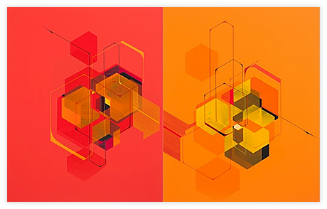 My paintings are a product of my obsession over process. Applying paint to a surface and the experiences and techniques that occur in creating an image are the purest form of motivation. The inspiration for my work is an appreciation for the paint, pinstriping, and finish associated with hot rod and car culture. Mid-century design, Geometric and Hard-edge Abstraction and a love of craft and technique fuel the work as well.