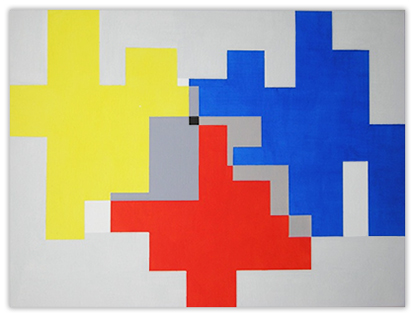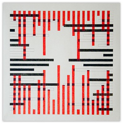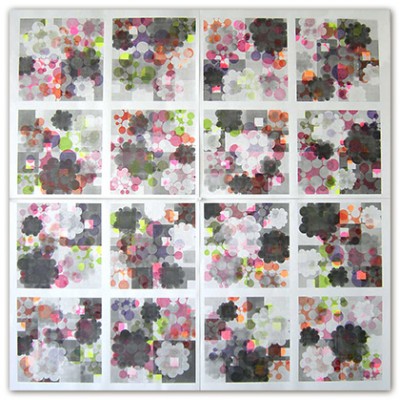 But can a very complicated, perhaps even bewildering, pattern impart a sense of calm and order? To visually test that hypothesis, I use simple numeric sequences, planar geometric shapes—circle, square, etc,—and an organizing principle such as a grid or an X/Y axis to produce complex, multilayered images. I view the work as experiments using pattern and shape as part of a continuing exploration of the relationship between the predictable and the unpredictable, the systematic and the random.