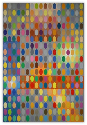 The uniting thread in all of my work is color and pattern, and how our perception of color depends on the adjacent colors. I use color in my work as a visual construct that appears random, but that in fact is based on careful study and perception. One of my earliest infuences was the great modern artist Josef Albers whose color exploration is well documented. I continue to be fascinated with how colors relate to one another and how shapes such as the circle, rectangle and square, which have infinite applications, can alter those relationships.
