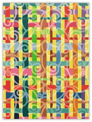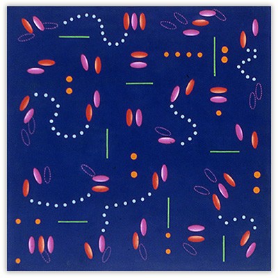 My current work is an exploration of patterns and schemes found in the world around us: in architecture, in nature and especially in textiles. I have found inspiration for my most recent paintings in old European tapestries and ancient textiles from around the world. My work has often involved themes, and in the past I have explored dance-step diagrams and earlier, the night sky.