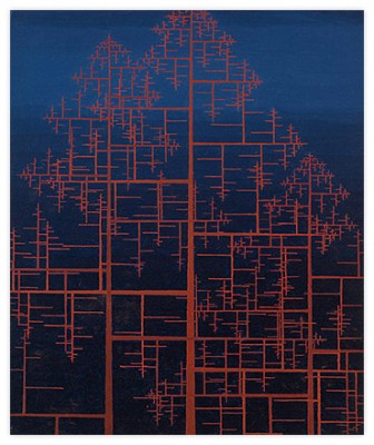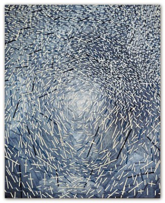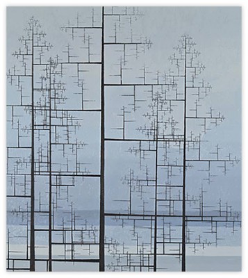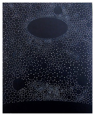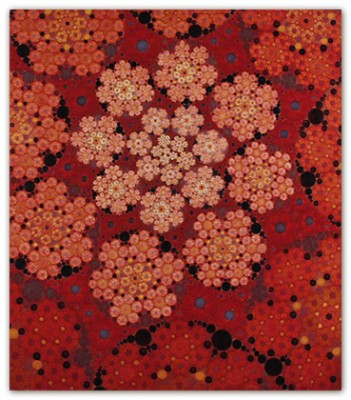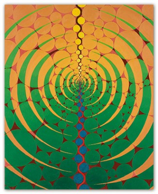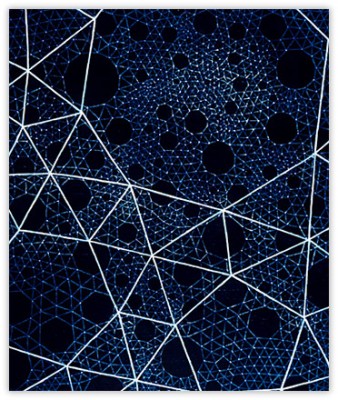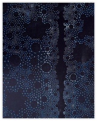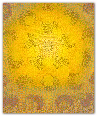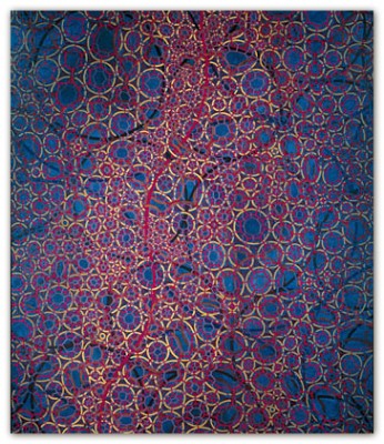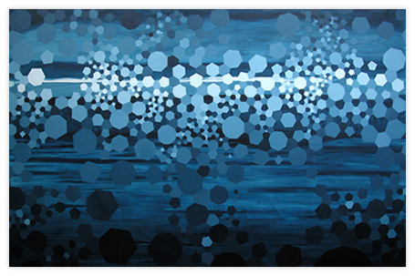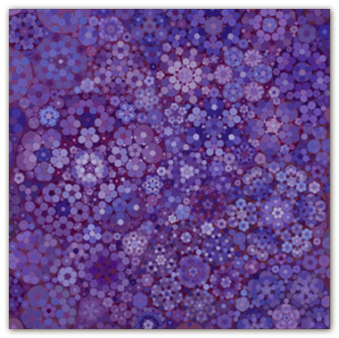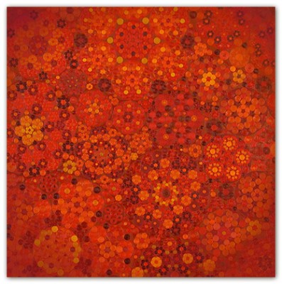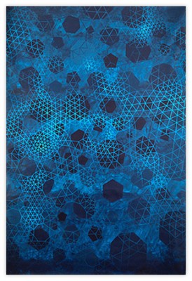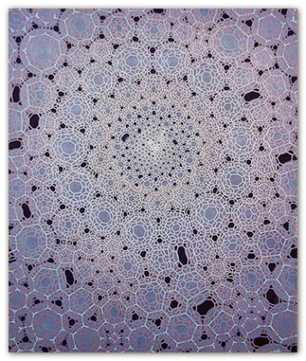 Geometry is expressed in my paintings through layered patterns of circles and polygons inspired by fractal forming processes found throughout the natural world. Color is used to distinguish and illuminate space. Each painting is a revelation on a theme of my evolving relationship with the infinite.