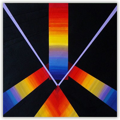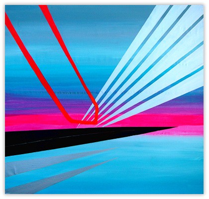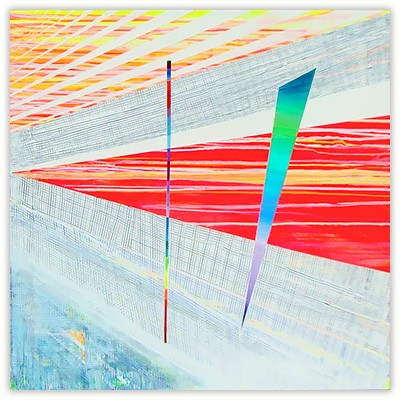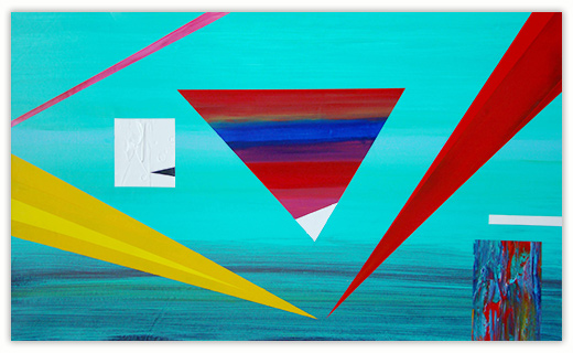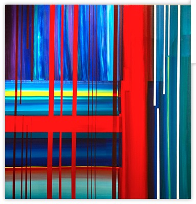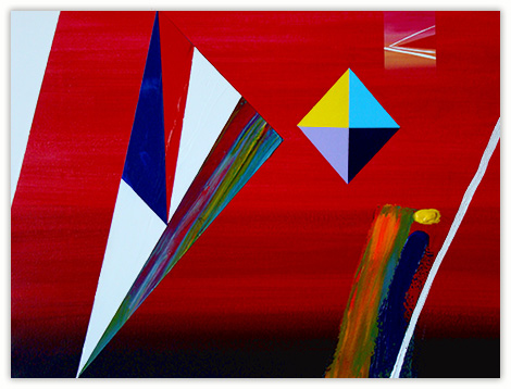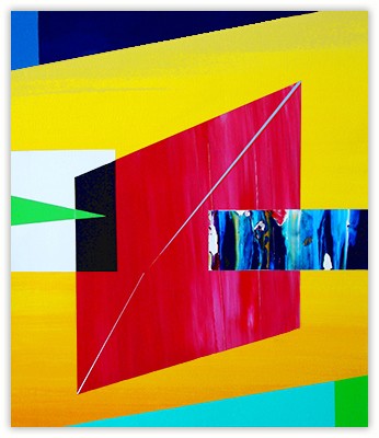 Every color speaks to me on multiple levels, and this dialogue is present in the synthesis of reality fragments, the future and emotions. Structures and colors in the painting are combined to reflect this intention. Paintings are fully self-contained, and a symmetrical impression of balance is present, coexisting with the free play of color vibrations.