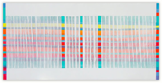 Geometric and free-form elements coexist in my work to resemble universal pulsations, thus creating intended tension among layers, order, impulse and the fight for balance, space, matter and essence.