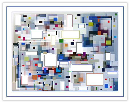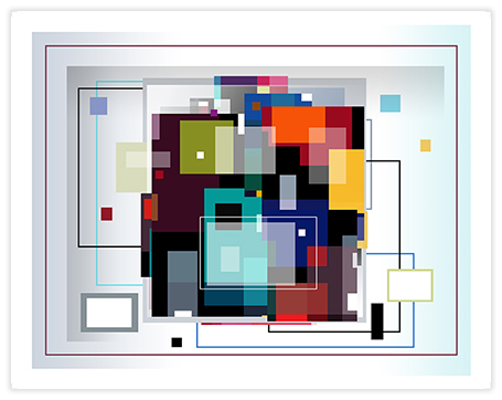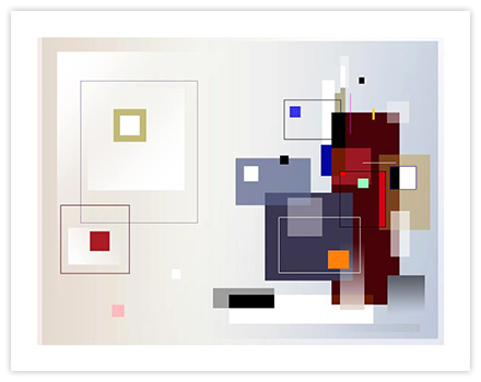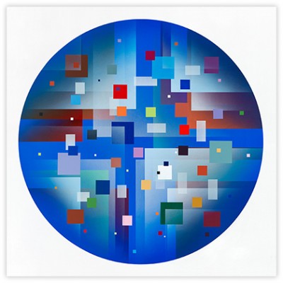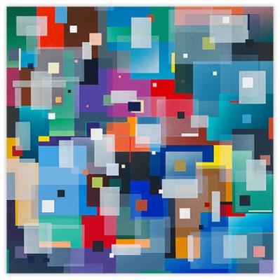 I strive for balance in color, shape and value. Measurements, scales, distances, sizes, relationships are key words. My works are created in a slow intuitive and iterative process, built up in several layers, sometimes transparent, where the transparency creates new shapes and colors. Sometimes color gradients are used to reinforce color action.