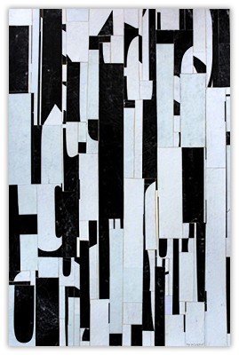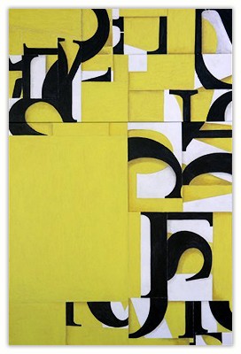 In my recent body of work with typographic abstraction it is perfectly natural that these works fall under the general term of geometric abstraction since typography is nothing if not geometric in design. My work is to break down the letters into non-recognizable configurations so that the geometric structures may be revealed. Language is perhaps the last vestige of representational-ism that abstraction has worked in counterpoint to. When we read words we barely even see the actual letters or forms of the language, but look through to the meaning represented by the clusters of letters. This is the tension that I am working on in my work in this series—to bring the mind back to the forms, to a primordial place before words took form.