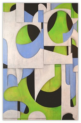 While much of my work falls under the general term of geometric abstraction I can’t say that I think in mathematical terms at all. Early on in my artistic career I developed a strong interest in abstract or non-objective art. I continue to study other earlier artists’ works starting with the Cubists and working my way through the 20th century along the geometric trajectory (as compared to other branches). I think of myself primarily as working out in leisure what earlier artists proposed in haste during their hunt for the “New Territory.” I see the last 100 years as an ongoing experimental laboratory with thousands of artists working in tandem to flesh out this new territory of which I am one. Hence most of my work stays on task, testing out various ideas and ways of constructing and expressing those ideas.