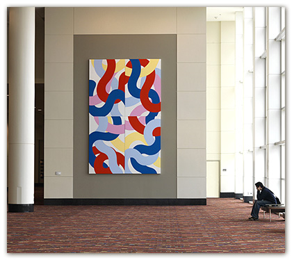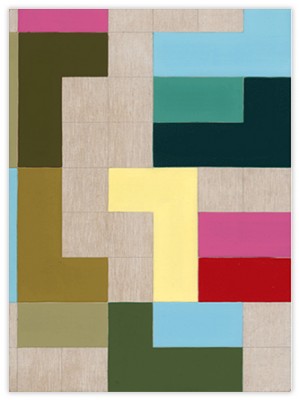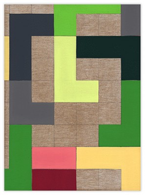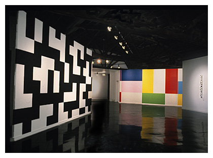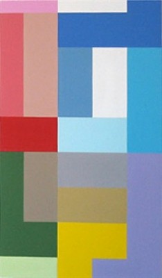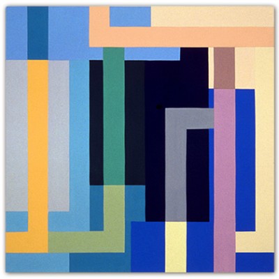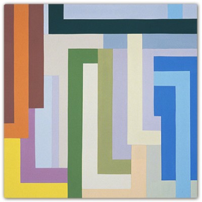 My work deals with form created by horizontal and vertical lines overlaid on a grid system. The lines for me are symbolic of our daily experience, which consists of opposite elements. Horizontal lines signify the passive, vertical lines the active or living. These forms also refer to certain sounds or language.