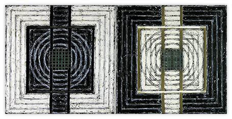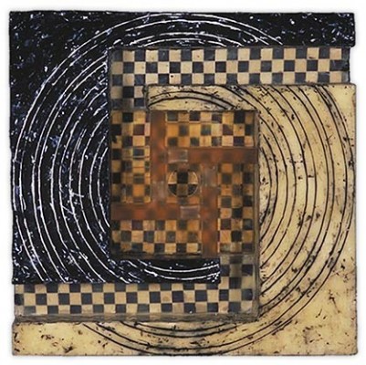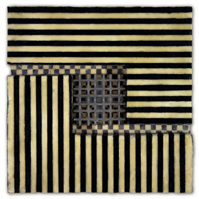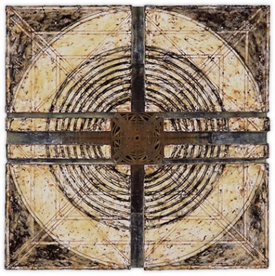 Another important aspect of my artwork is the surface quality achieved through the manipulation of materials. I have been working in encaustic since 1984. I was attracted to the medium from the ancient mummy portraits from Faiyum and from articles I had read about the use of wax in art conservation. It seemed to offer the surface I needed to continue a five year period of intensive drawing and facilitate a move back into painting. The surfaces in my most recent paintings have been expanded to include constructed three-dimensional forms embedded into them. In these pieces I am striving for an amalgam of industrial and technologically derived images culminating in non-objective forms that address non-representational and non-narrative issues.
