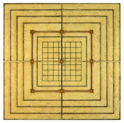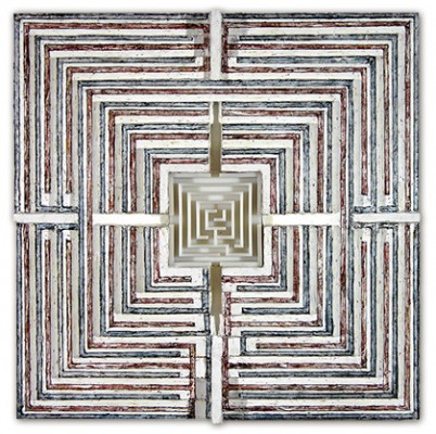 Mazes and labyrinths have always intrigued me and have been used throughout history as symbolic and captivating structures. I view these as diagrammatic and derived from architectural structures. The viewer may feel the need to mentally “walk through” these interconnected spaces in order to understand them, or the reference may be more subliminal. Cezanne’s idea of reconstructing his vision based on the simplified terms of a few shapes—a sphere, a cone, and a cylinder—has always fascinated me. The circle, the square, the diamond and the triangle in these geometric pieces are, for me, building blocks.