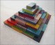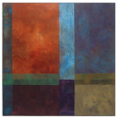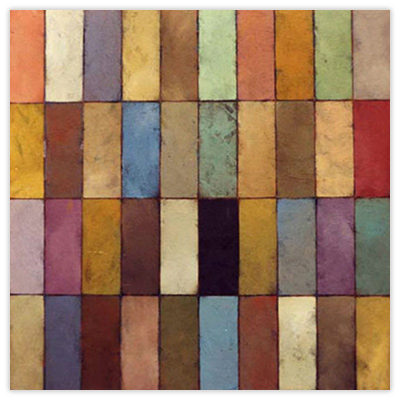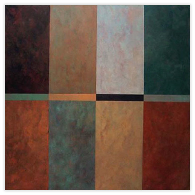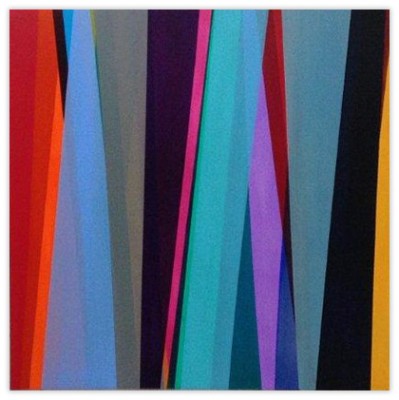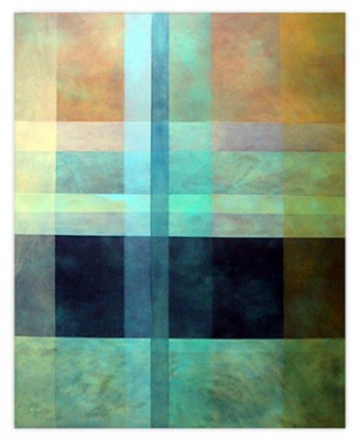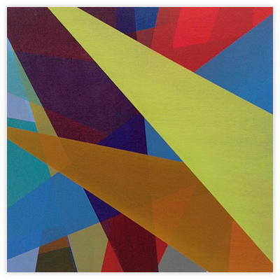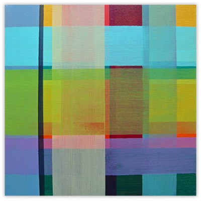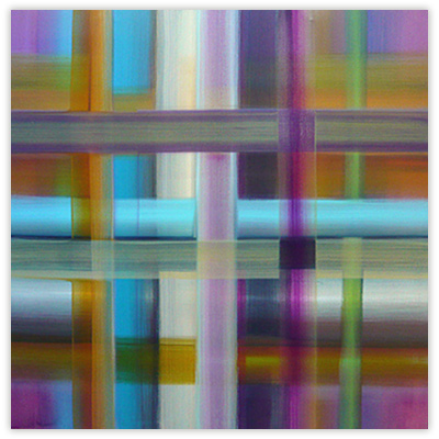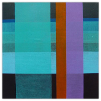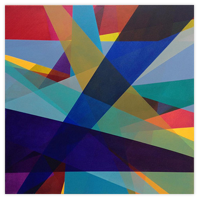 My paintings move in a geometrical world from vertical striped tensions of colors to beams of transparent layers.