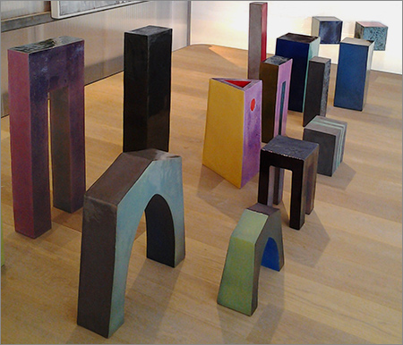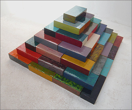 I prefer to work on square canvases and polyptychs. In my studio I work in both painting and ceramics.