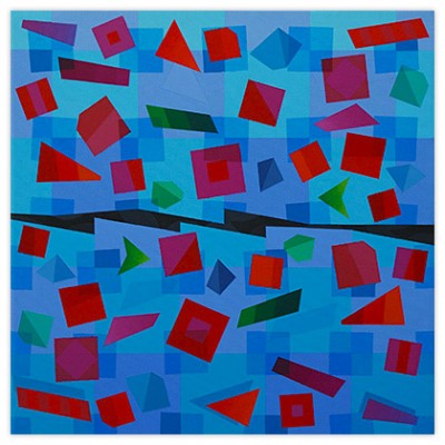 My work currently, and over the past few years, features the use of geometry to create dynamic visual experiences. I am expecting that the experience will vary considerably for different viewers, especially because people’s perception of things like spatial compliance and symmetry are far from uniform. Although my work has been primarily intended to be visually referenced only to itself, I have recently begun to utilize language—in the work’s title—to “complete” a visual concept; hence, in my current series of paintings, Perfect Symmetry, you may find actual symmetry is found only in the title itself and/or its provenance.