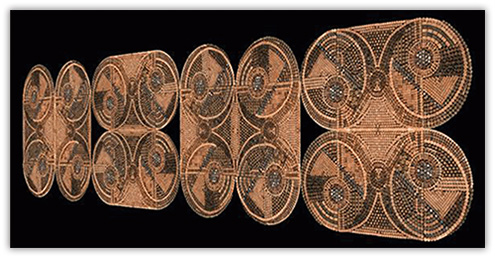 The completed abstract geometric works are meticulously photographed, resulting in perfectly focused, high density images. Details are photographed separately. Certain elements that were worked together and separated in the finished art are photographed together. These photographs became the starting point of my new aesthetic, images true in every detail to their original art, but transformed to express new abstract geometric forms. Here, the exactitude of the original art is rewarded. Images can be associated, joined, even layered, their exact, unassisted matching assured.