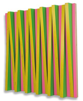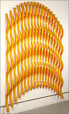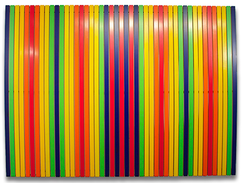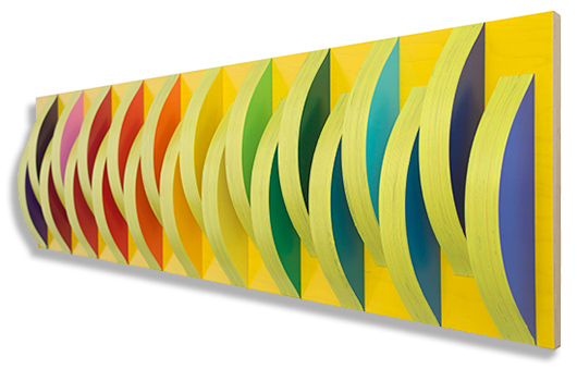 My work involves processes that transform materials, quite often plywood and paint, into objects that combine the beauty and order that I mine from our natural world. I edit, simplify, and bring out the essential elements from the everyday observation of nature. I abstract and synthesize these shapes, colors, repetitions, and motions into physical pieces that can become both visually exciting and contemplative through this transformative process. The wealth of geometric occurrence in nature provides a vast library of forms to work with.