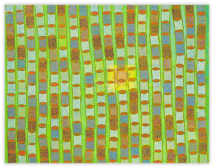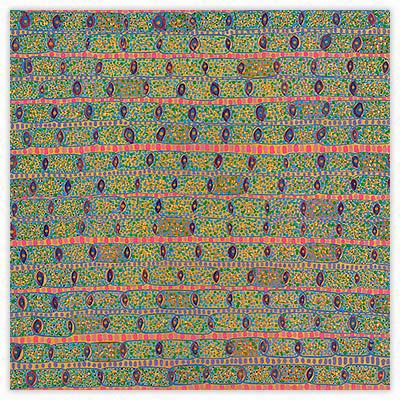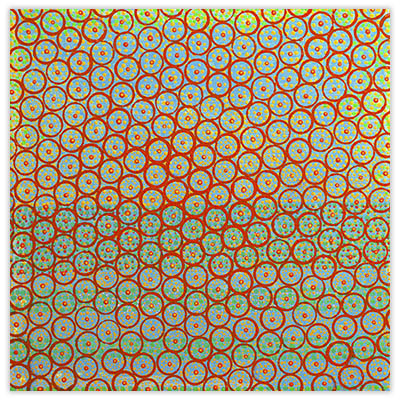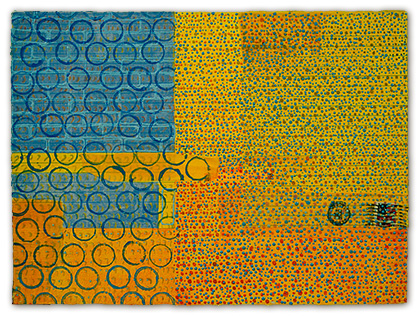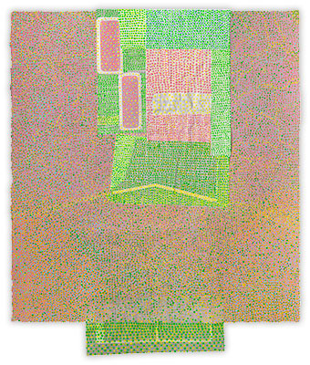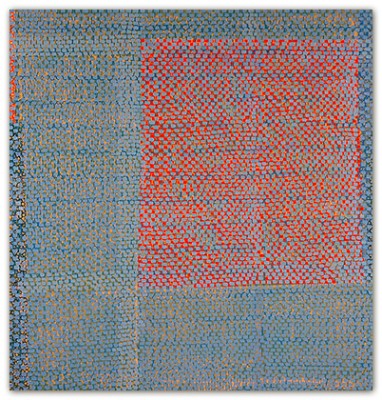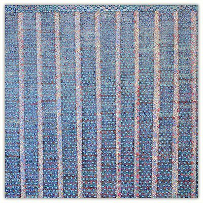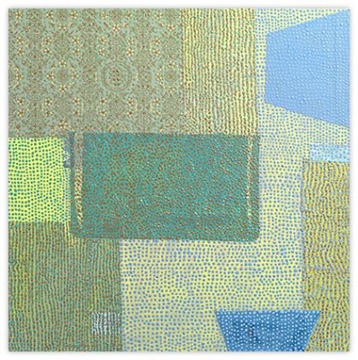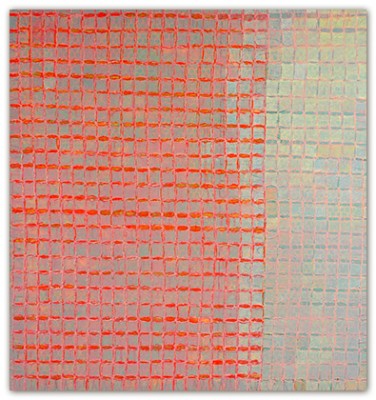 The layering of a wide vocabulary of marks within veils of color creates rich images, full of persistent sensations. Color, pattern and repetition are core issues in the making of my work, and I almost always begin with some form of grid. Most often, and with long periods of concentrated focus, the work evolves to a point where it teeters between balance and distortion. The nature and inexactness of this loosely applied geometry is very specific to me and is evidenced in all of my work.