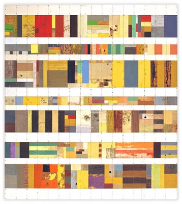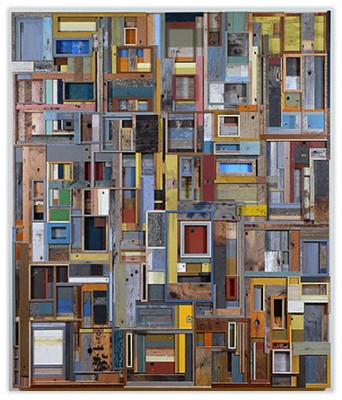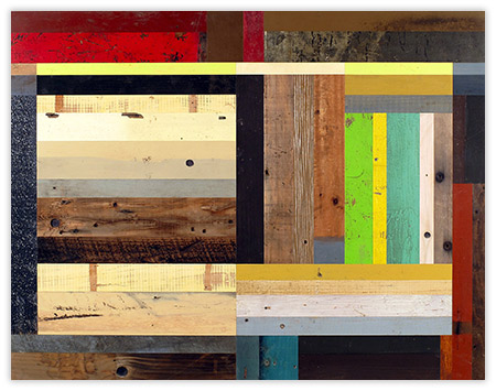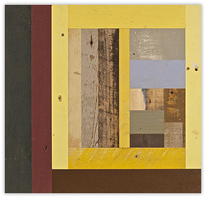 My new body of work uses discarded wood gathered from landfills and construction sites in Vermont. The works I create contain aspects of sculpture, drawing and painting referencing many of my interests from quilting to architecture.