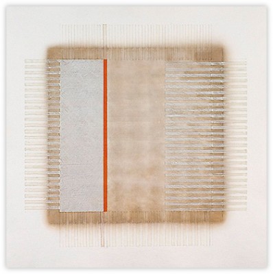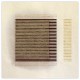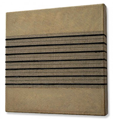The works are made in series and typically exhibited in groups. Stretched linen pieces have an assertion of the physical, the linen openly confessing its textile-ness. In these works the small box-like stretchers are reinforced by wax lines (or sometimes thread) which cross the surface and go around the edge towards the wall on which they hang. The materials used are very particular: oilbar, wax, thread, and Belgian linen stretched over surprisingly deep stretchers considering the modest scale of the works. The earth-like color of the linen itself varies, reminding us that the cloth is made from flax.