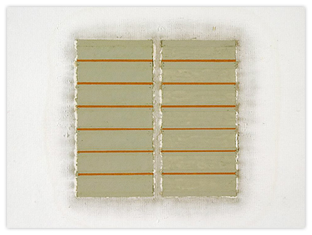 At first glance my work appears to have strong affinities with recent Minimalist art. It is distinct, however, in being acutely tactile and imaginatively open-ended, evoking wide-ranging haptic as well as visual associations that give the work a wistful sense of age and wear. This sense is reinforced by the fact that support and medium are so thoroughly fused that it is difficult to distinguish between them.