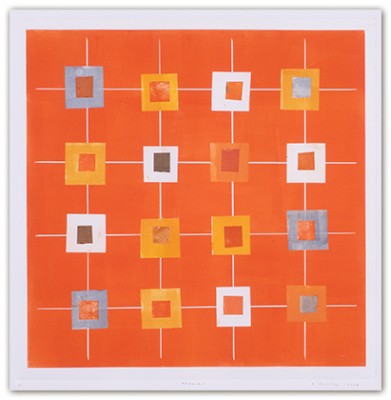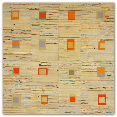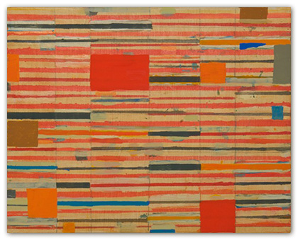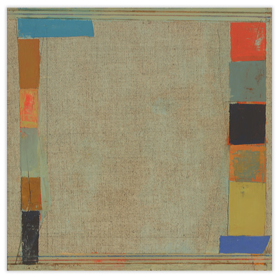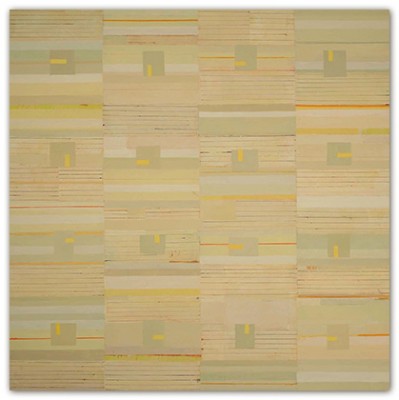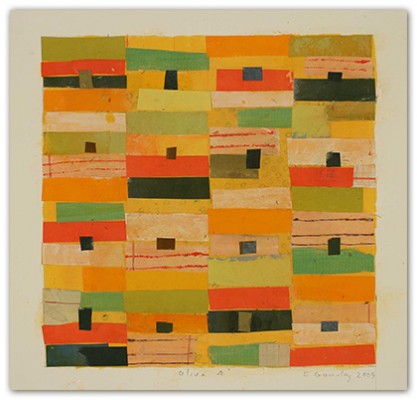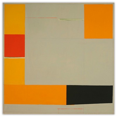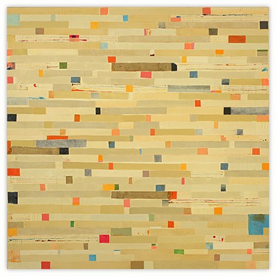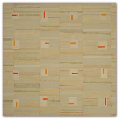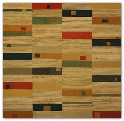 I often begin with a background layer of washes and then work with elements of line and shape in the foreground. The color may become muted and minimal, admixing into greys and earth tones, or it may be vibrant and intense. There are parallels in musical composition, as looking at the work is an interaction, and the eye moves around the piece element to element, as musical note to musical note, chord, discord, harmony and tone.