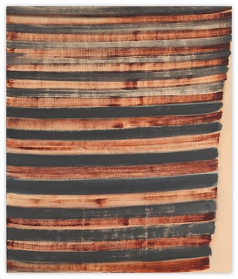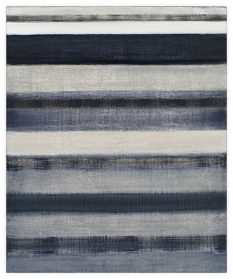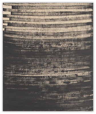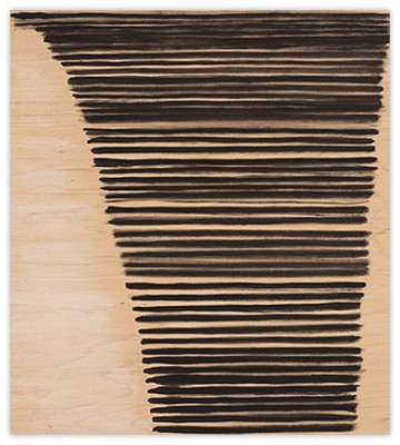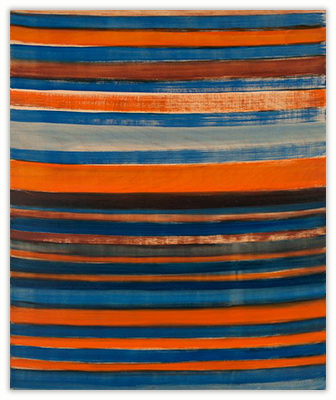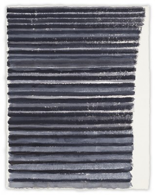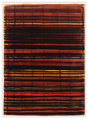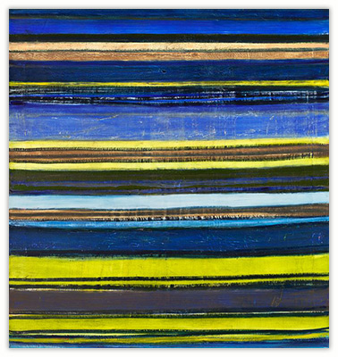 My work has always combined elements of the rational and irrational, the geometric and the gestural. One is contained within the other; they are inseparable. These oil paintings on wood panel and linen and drawings in ink on paper are based on a geometric structure of repetitive and deliberate gesture that is meditative and intuitive. The work emerges from the grid, although verticals remain only vestigially. As I paint these horizontal bands, an element of chance is crucial. The surfaces and textures of the wood, linen or primed paper affect the application of the paint and resulting image. I work with and against whatever happens as I am painting. I am fascinated by the variations that can occur in a simultaneously layered and reductive image and in the light and rhythm created by repetitive yet varied linear form.