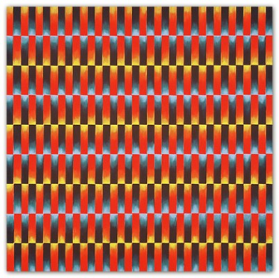 People have said that my work also looks like woven fabric. A probable influence is my family’s collection of Indian rugs and weavings, all at one time belonging to my grandfather who was part Indian. Those woven pieces were the first pieces of art I ever saw, and they are sort of coming back to me in my own work. I use no stencils or airbrushes, and the results are similar to the irregular organic patterns found in both nature and those weavings.