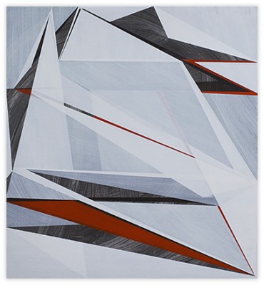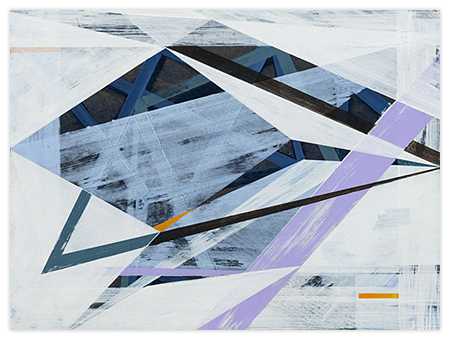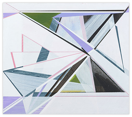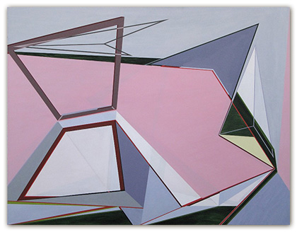 The subject of my paintings concerns the relationship between the space and the emotion I find myself in at the time. After that moment has occurred, all problems are pictorial. My paintings take shape through a gradual process of layering, and as the internal logic of each composition unfolds, forms are defined, buried and rediscovered until the painting becomes “congruent with itself.”
