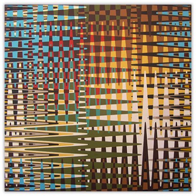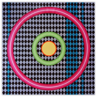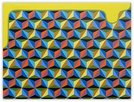 I am interested in geometry because we habitually use it to relate to space, as in our physical habitat or environment (in the design of cities, public spaces for recreation, our homes and most utilitarian spaces), as well as for storing knowledge and thoughts (software development is a very clear example of this) and within the history of art through its ability to generate the poetic within the historical moment in which the works were made. Very important to me were teachers of European modernity like Piet Mondrian and Bridget Riley, for example, and local artists such as Carlos Silva or Cesar Paternostro initially, expanding my knowledge during my studies at university to Americans geometric painters like, for example, Peter Halley, who had a different purpose, working with a concept from which to develop an extensive series of works. The influence of all of them as well as many other issues are included in my work in one way or another.
