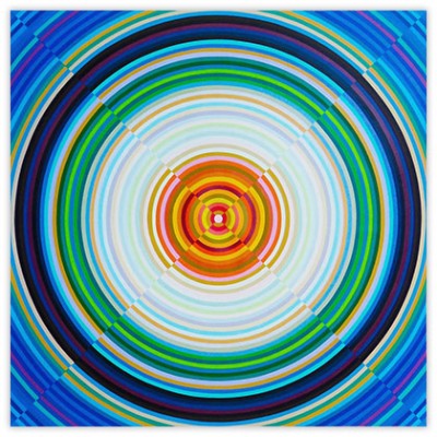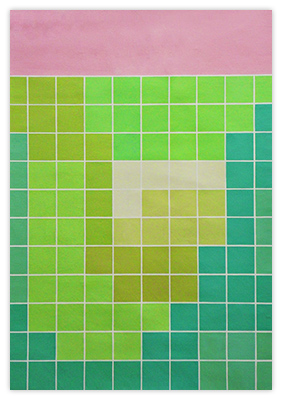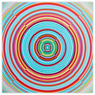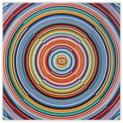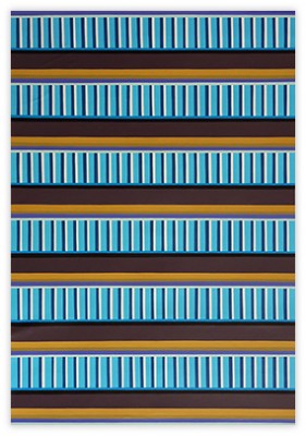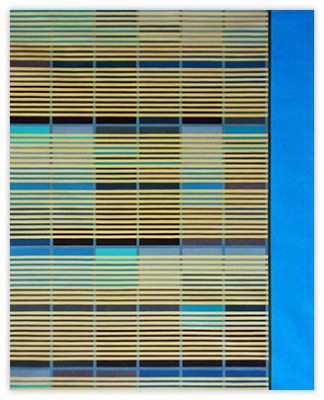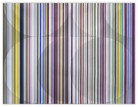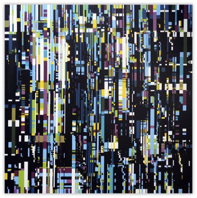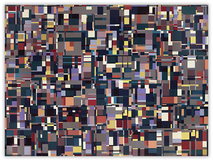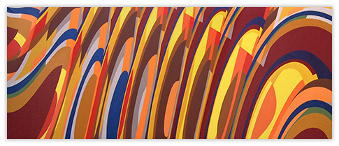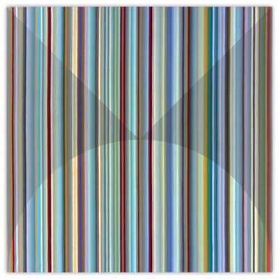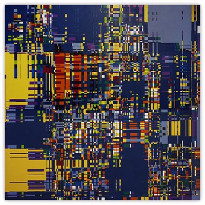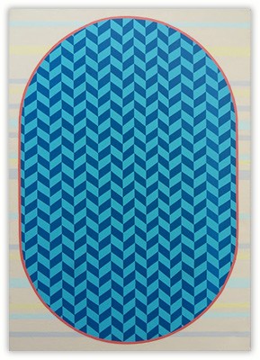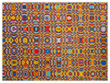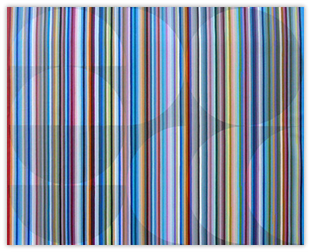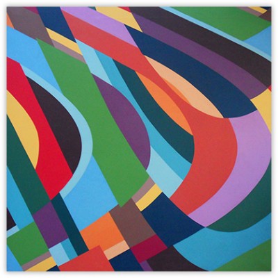 Within geometry as a language of formal poetic discourse, on one hand I use knowledge developed by Gestalt and used in optical art, and on the other large contrasts of color used in a sensitive way. These means are effective both in generating some unease in the eye of the beholder and as visual elements that unite the work. Color is applied in a flat, homogeneous way, generating contrasts of temperature, tone and value expressively. I don’t use systems to define what colors I will use in advance; rather this is a delicate matter that I determine as I work. This use of color is extremely important; the work will assume its final form as influenced perhaps by a video, a movie, something that happened to me while walking down the street and even advertising, a dress or the painting of another artist. The making of my work and what it demands of me requires time since I do all the painting freehand, which imparts a soft, expressive quality to its finish—quite different from what might be expected of a geometric work that flirts with optical art in its visual complexity—a line that although it does not appear to wobble is not as hard as a line formed with masking tape. This type of contrast produced contradictory and disturbing effects when I exhibited series of works like “Random Links,” “Ondulaciones” or “Pequeños Movimientos,” which are generated by computer software.