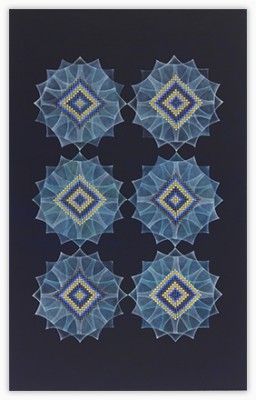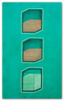My paintings reference work utilizing an abstract, non-linear perspective as do Byzantine mosaics and Indian Tantra drawings. I am compelled by the spiritual rather then the physical geometry of space.