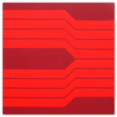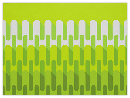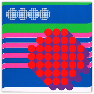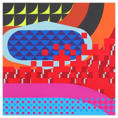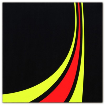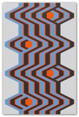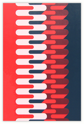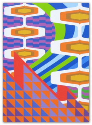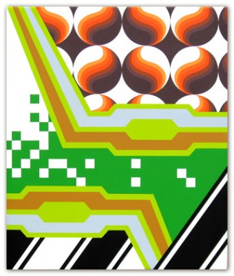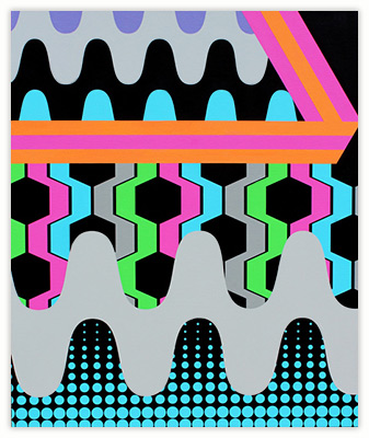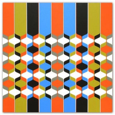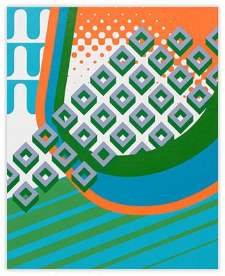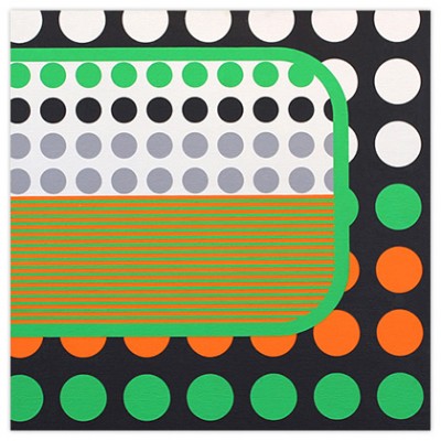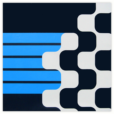 Regardless of which compositional strategy I am employing, design remains the common genetic thread in my work. I find inspiration in everything from consumer products—packaging boxes of prepared foods and race car designs—to vintage geometric textiles, Op Art, and Brutalist architecture.