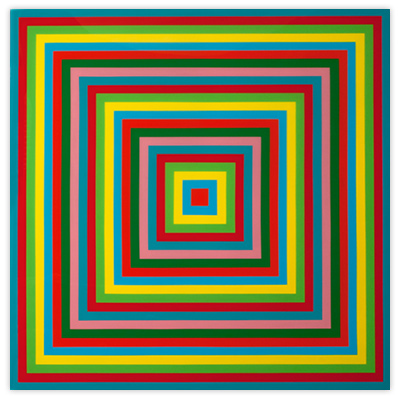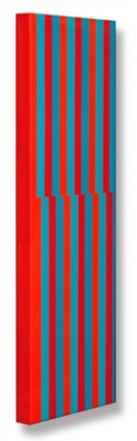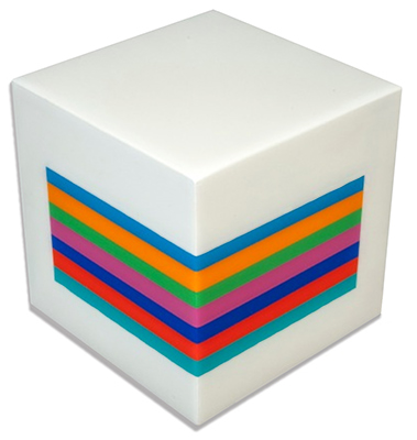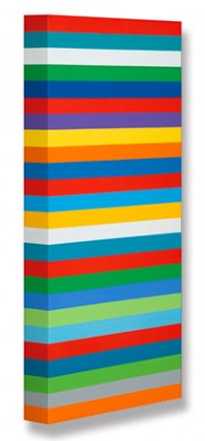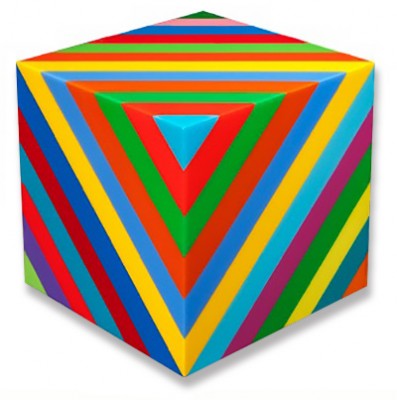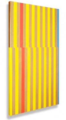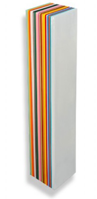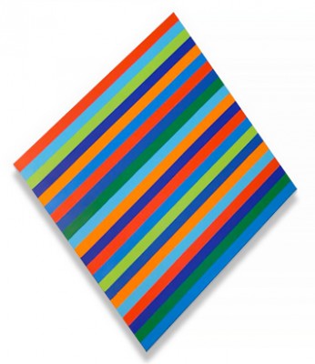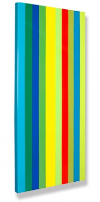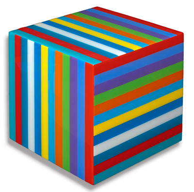 My work is a response to art that invites viewers to react emotionally to the world around them. Meant to deny the temptation for reflection of the soul, the colors, paint, geometry, vibrations, scale, intervals and texture form an external expression of order. And yet, there is no denial of meaning in these geometric minimalist works. While emotional context is illusive, the vibration of colors is evocative of self-reference in themes of musical rhythm, club life from an era past, techno beats and narcissism. Through usage of repetitive vertical/horizontal/diagonal geometric compositions in acrylic with resin on birch panels, cubes and rhombuses, the viewer is prompted to experience the dance of colors, each specifically chosen to vibrate one against the other so that he or she may feel, see and hear the musical pulse. As each color bounces off the other, the choice of color and geometric shape influences the experience for the viewer. As the viewer participates in this synthesis of senses, the impact of color and geometric forms on humans is brought into focus and yet not meant for interpretation.