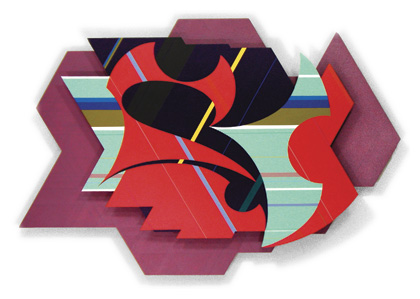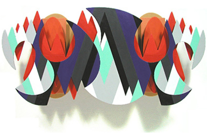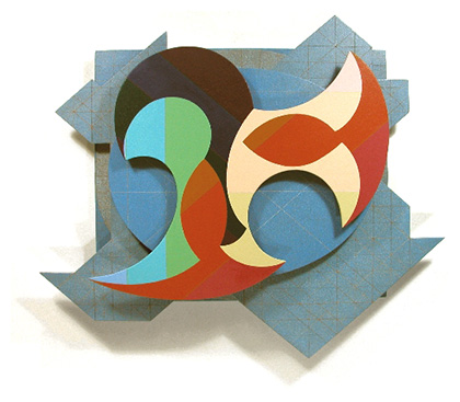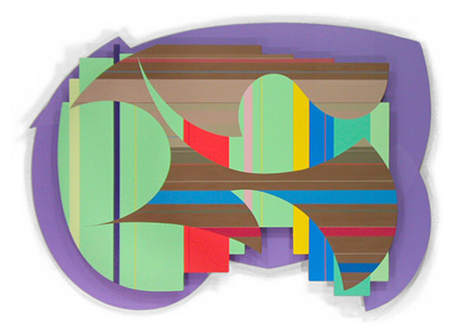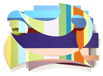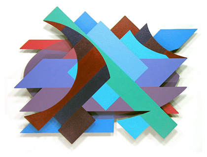 I realize my compositions in several media. I compose on computer saving each step as a separate file. I then develop these individual files into digital animations. From the animations, I identify pivotal states of the composition, which become sets of digital prints. From animations and prints, I construct reliefs in acrylic and wood. I do not treat prints and animations as blueprints from which to fabricate constructions mechanically. I use them as viewpoints of departure from which I project and visualize some of the three-dimensional implications of the composition.