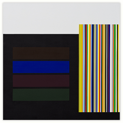 Over the years, the organic inspiration of my early works gave way to a geometric idiom, and the monochrome of my realistic pictures (which also represented architectural floor plans) was slowly replaced by a preference for concreteness and color. I became interested in additive structures in which the visual representation of objectivity meets with the optical effect of the color stuctures I use.