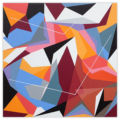 My works contrast the physical elements of concrete painting with the playfulness of the branch of geometric painting that concerns itself with optical phenomena. I seek to produce a taut, harmonic representation of the encounter between different levels of reality.