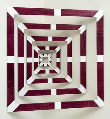 I strive to find clarity and resolution in line, color, and form, while challenging viewers’ perceptions of surface and space through simple, precise gestures on wood. The use of geometric forms allows an accessible entry point through which the viewer can be engaged.