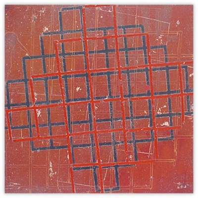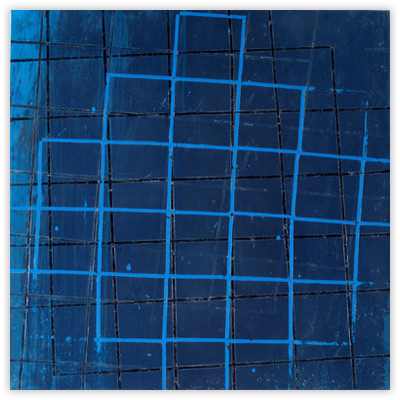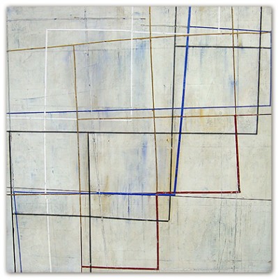From the outset, geometry—created with lines made of masking tape—brought order to my expressionist color fields. Smooth colored surfaces, achieved through wet sanding of acrylic paint, contrast with my more free and textured brushstrokes. Fundamental to an appreciation of my work—though very difficult to simulate on a monitor screen—is the experience of the materials that I use, both their poetry and their manner of use. The geometric elements and the way in which they are integrated into my paintings have always been quite simple. At times I have been tempted to impute to them a philosophical transcendence that they do not have or need.