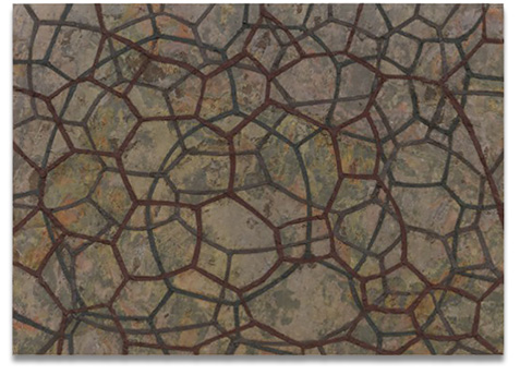 Our minds are hard-wired to seek out pattern to help us interpret the world and predict the outcomes of uncertain situations. But patterns whose structure is obvious resolve too quickly to hold our attention. When confronted by complex configurations that suggest, but don’t immediately reveal, their underlying architecture, our neural pathways come alive with questions. I explore this intriguing territory by drawing from the irregular geometry of cultivated fields, patched boro textiles, Korean bojagi cloth, the cracked ice motif of traditional Chinese woodwork, the mysteriously compelling abstract geometric forms of cemetery maps, and the natural structure of foams whose mesmerizing hybrids of order and randomness occur throughout the universe at every scale from the growth of sea sponges to the clustering of galaxies.