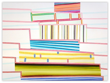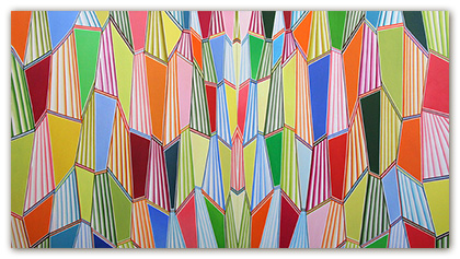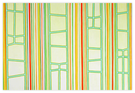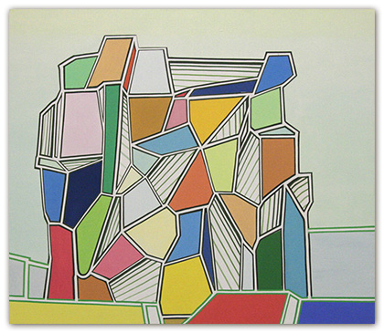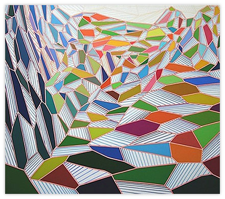 In my work I use the basic elements of line, plane and ground to investigate concepts of painterly language. Painted freehand with intuitive color choices, the pattern, fracture, shifts and realignments recapture the dynamic movement that underlies everything from the ocean’s floor to a modernist building.