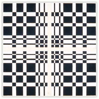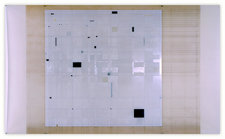 In the late 80s I began to investigate algorithms as a way to allow for consequent decisions when working with geometric forms. I was looking for correspondences between the body and the environment, for a way of enhancing the potential for proportional relationships to create spatial harmony. Using intervals based on the numeric code I discovered in the cross patterns of liturgical vestments of orthodox icons, I developed a harmonic grid to use as an underlying structure for my paintings. As geometry it’s quite simple and uses the relationship between the side of a square and its diagonal as its armature.
