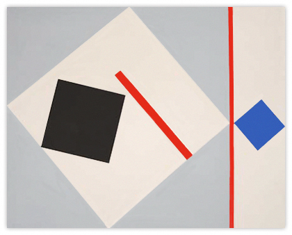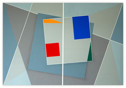 Principles of geometry, scale and colour have led me to reject subject matter that deals with representation, as form and colour have their own innate reality.