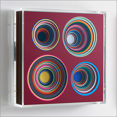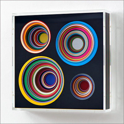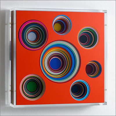 Central to my work is an open painting system where circles, rectangles, squares and cubes form a new independent vocabulary. Individual aspects such as color, form and space combine with systematology and order, with chance and irregularity, in an extremely virtuosic, varied and sensuous material painting.