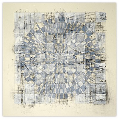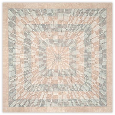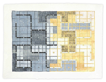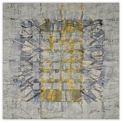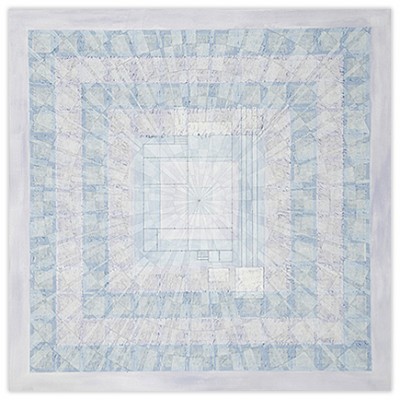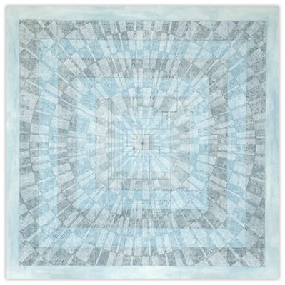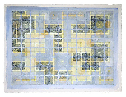 These new works explore the ways in which houses in which we have lived in our early lives influence our dreams, daydreams, creativity and art. These houses also represent an additional geometry imposed between the geometric structure of the underlying painting and the geometric patterning of concentric circles and radii.