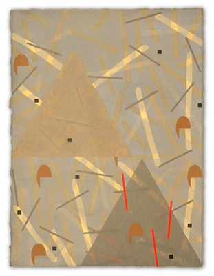 Presently, my influences have been derived from travel and study in Vietnam and Cambodia. The purpose of this opportunity was to research traditional fabric coloring techniques that relate, in part, to the grounds or rear spaces of my paintings. Furthermore, I was intent on documenting my observations of shape, color and atmosphere in drawing journal form. The resulting work on canvas, rag paper and wood has been formalized in my Philadelphia studio.