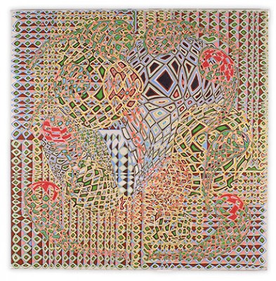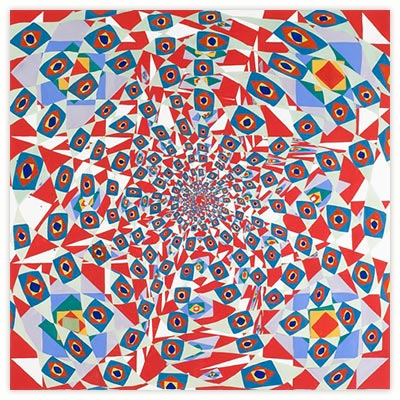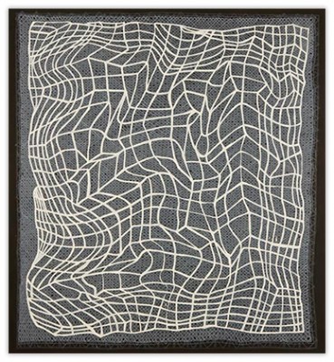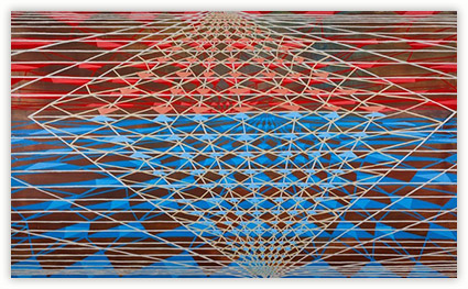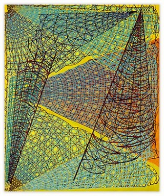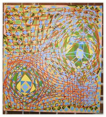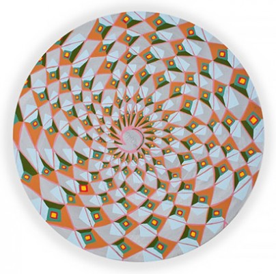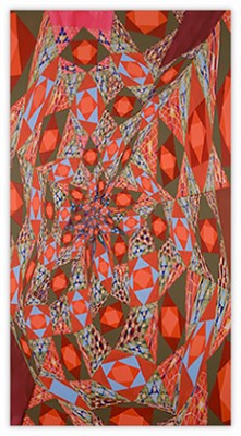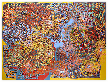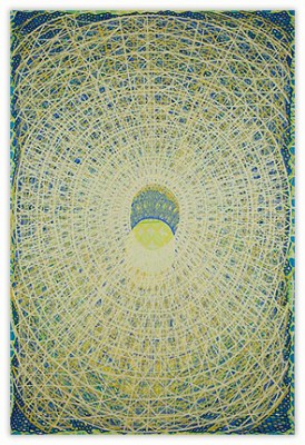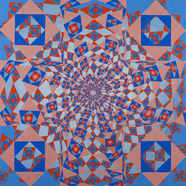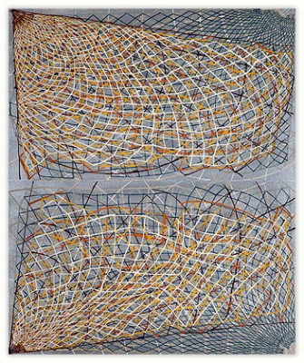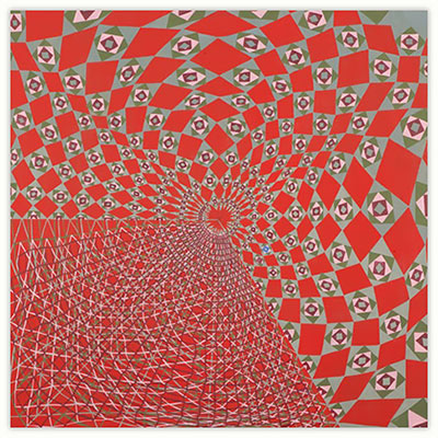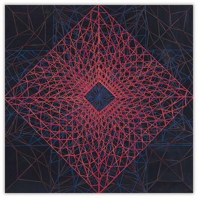 The paintings, like yantras, are built from simple geometries, simple patterns; and then through repetition the paintings open up to the multiple possibilities of form…..