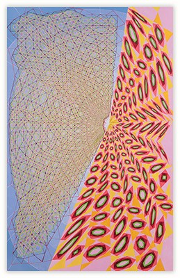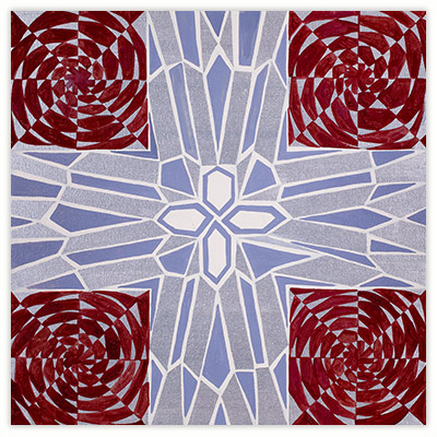 Shortly after completing three paintings titled “Primary Forms” (Red, Yellow, Blue), I learned to paint a yantra—a visual tantric tool for meditation that is composed of precise geometrical forms.