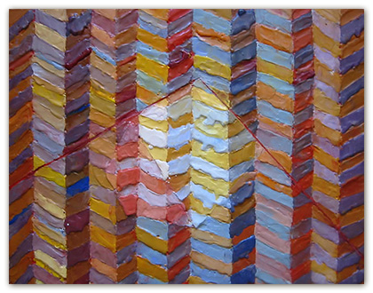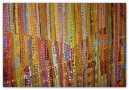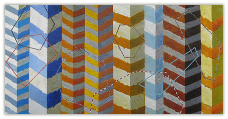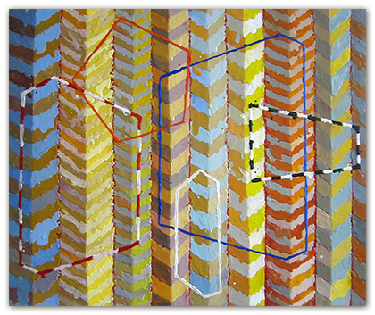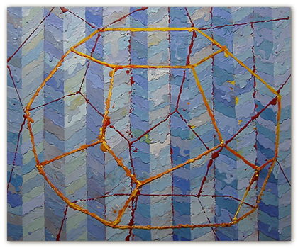 The type of patterns I find in nature that inspire me are the honeycombs of bees, facetted crystals, and a raft of bubbles. I see the results of microscopic principles in the development of large forms in all of these. My paintings deal with the relationships between the microcosm and the macrocosm.