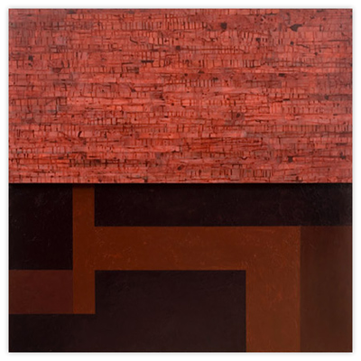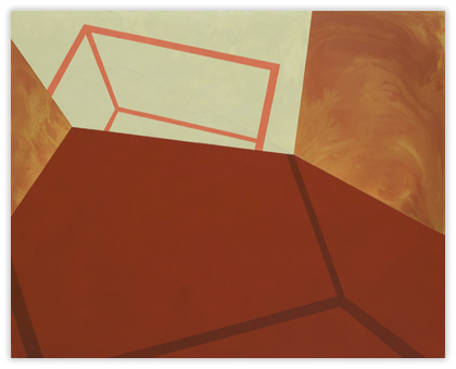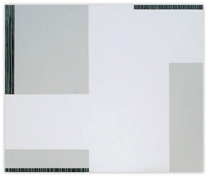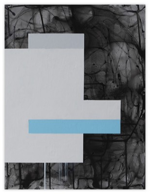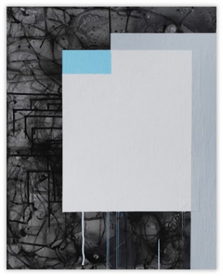 For many years I’ve made paintings that have incorporated geometric imagery. Having been inspired by the organizing principles found in architectural schemata, I put this foundation to various uses. The earliest work illustrated here is about a kind of uncertain equilibrium found in the shape juxtapositions. A quiet calm is created within the mostly monochromatic paintings by virtue of a carefully balanced combination of these tenuous relationships.