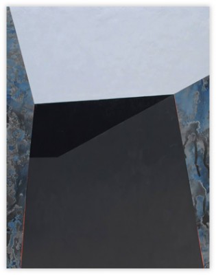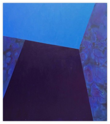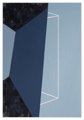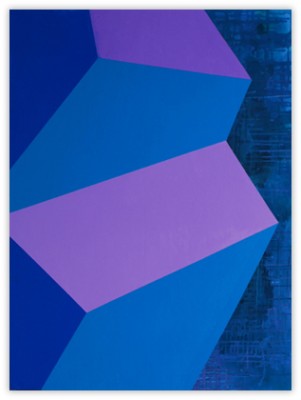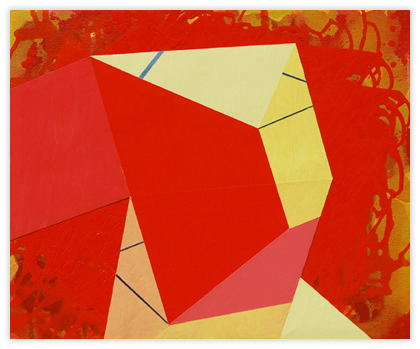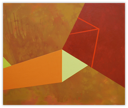 Gradually the surfaces have become more like stages where a theatre of geometric forms and painterly spaces reverberate. With the hard-edged geometric elements appearing to float within an atmospheric environment, the contrast of each type of depth is part of its character. The distorted shapes I employ often speak with a sculptural voice while simultaneously affirming the two- dimensional plane on which they exist. Illusion is present, but always challenged by its opposite.