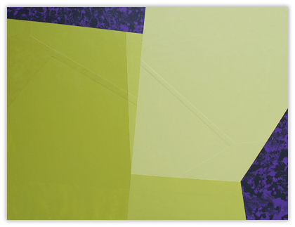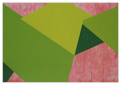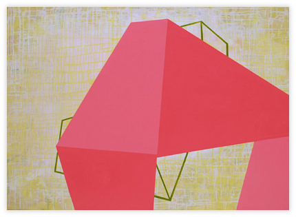 Within the definition of the geometric forms also lie further contrasts. At times the planes are opaque and flat. Other times they appear transparent or give relief evidence of linear armatures beneath their surface. These components often collide with each other and almost always push against or appear to move beyond the painting’s perimeters. On the one hand the work can be understood as a glimpse—a partial view of a larger world—and on the other its composition is inextricably linked to its existential nature. It is an object engaging the planes as an equal partner while also acknowledging the illusion of a space beyond its influence. In essence my work is an attempt to navigate these forces—to formulate in colorful terms a visual riddle that reverberates with tension, contradictions, resolution and mystery. I also just want them to be fun!